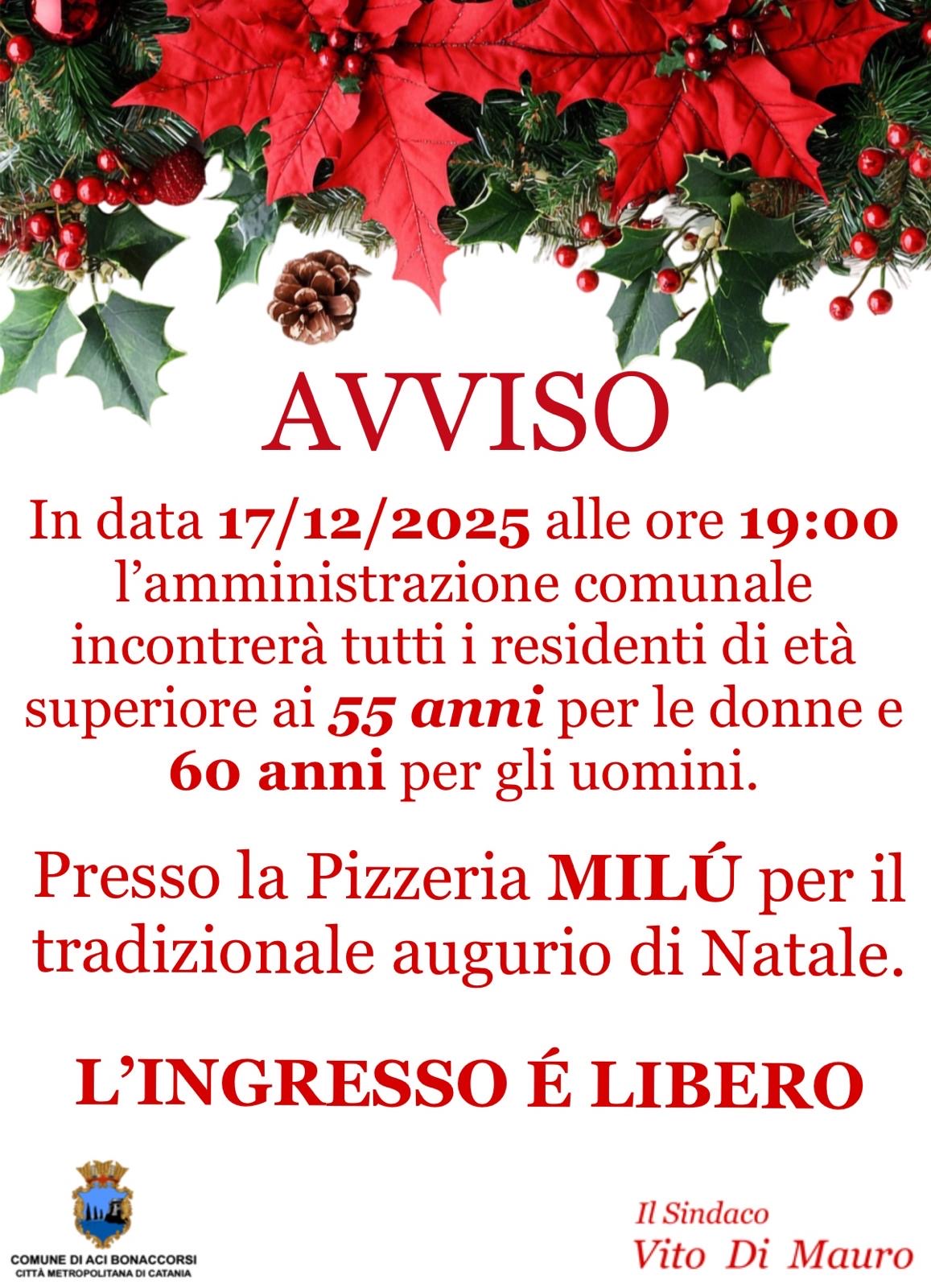 L'Amministrazione incontra gli anziani per gli auguri di Natale presso la Pizzeria Milú