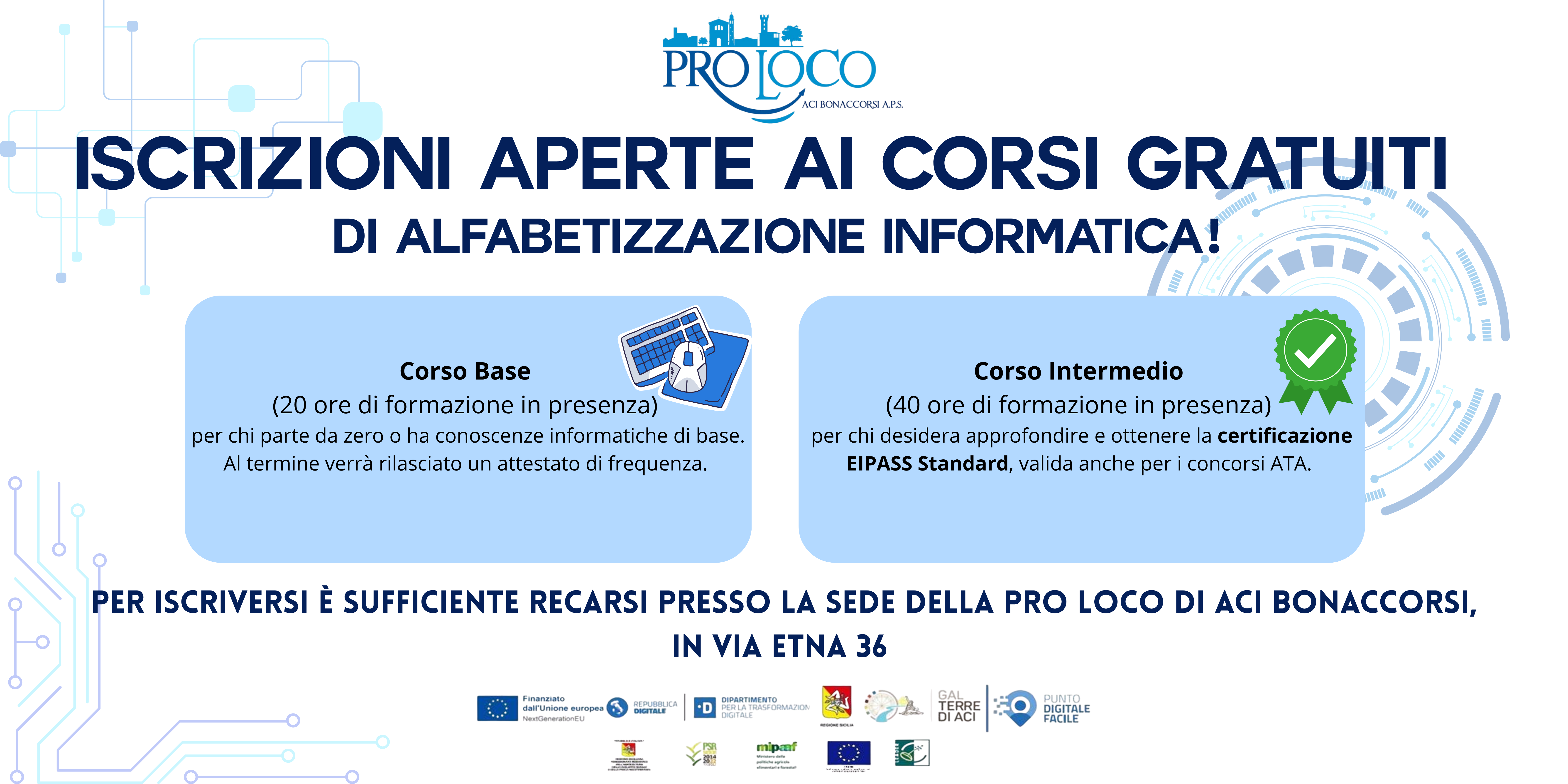 Sono aperte le iscrizioni per i corsi gratuiti di alfabetizzazione informatica